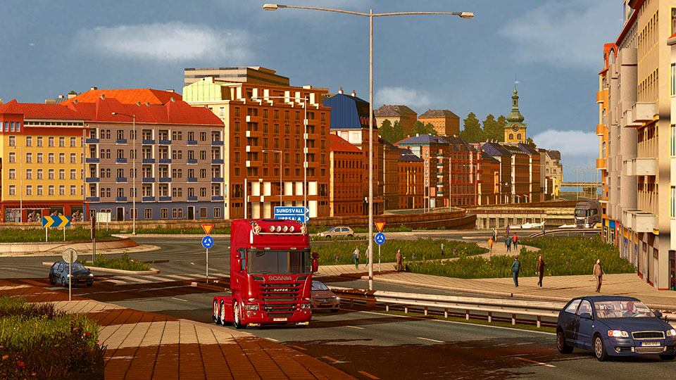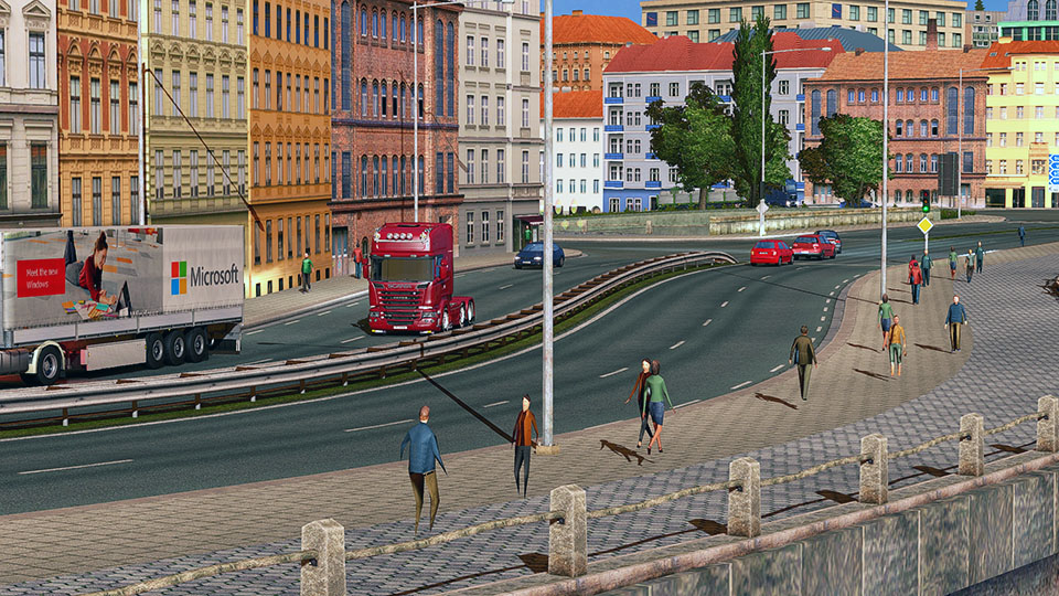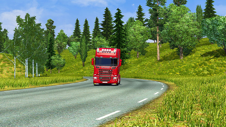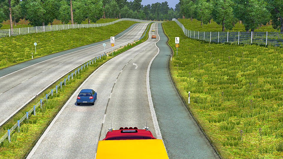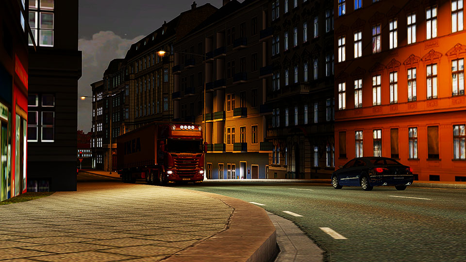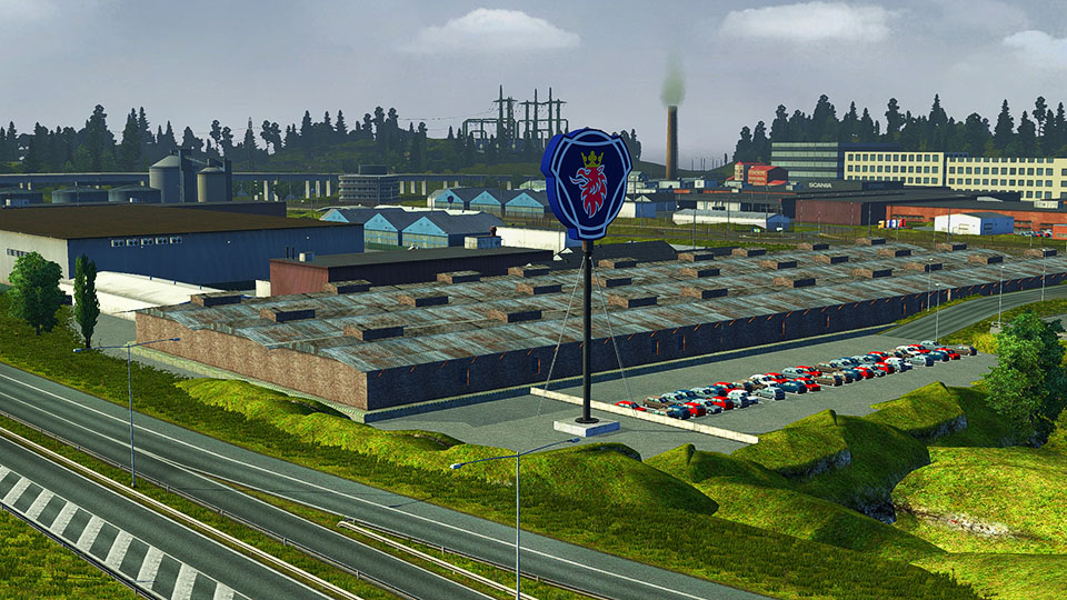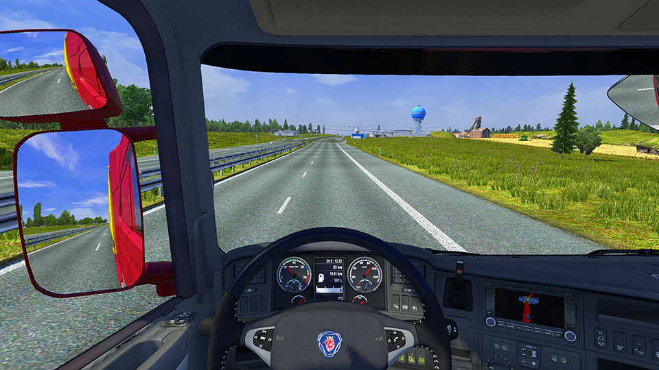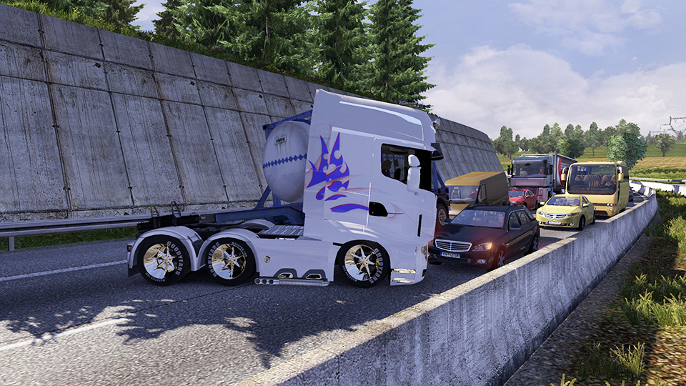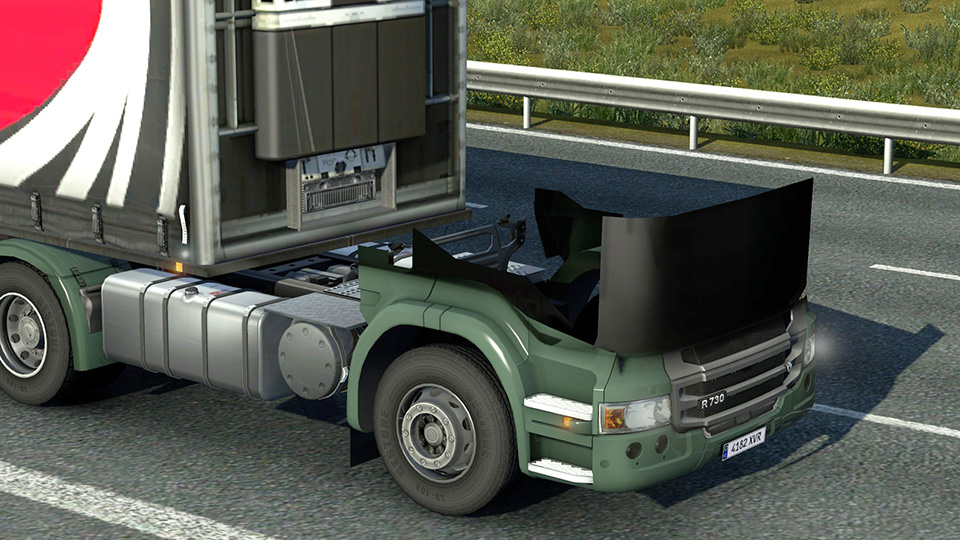このmodを導入後、高速ですれ違った時に「あれ?」と思ったのですが、次にすれ違ったSCANIAはまともに表示されていたので、目の錯覚かな?と違和感を感じつつも街で信号待ちしていたら、キャビン無しSCANIAが真横に停車。