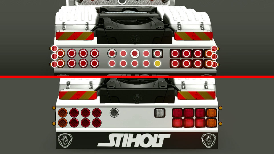 ブレーキランプ、バックライト、ウィンカーの形状が四角か丸を選べ、任意の位置に付けられるようになった